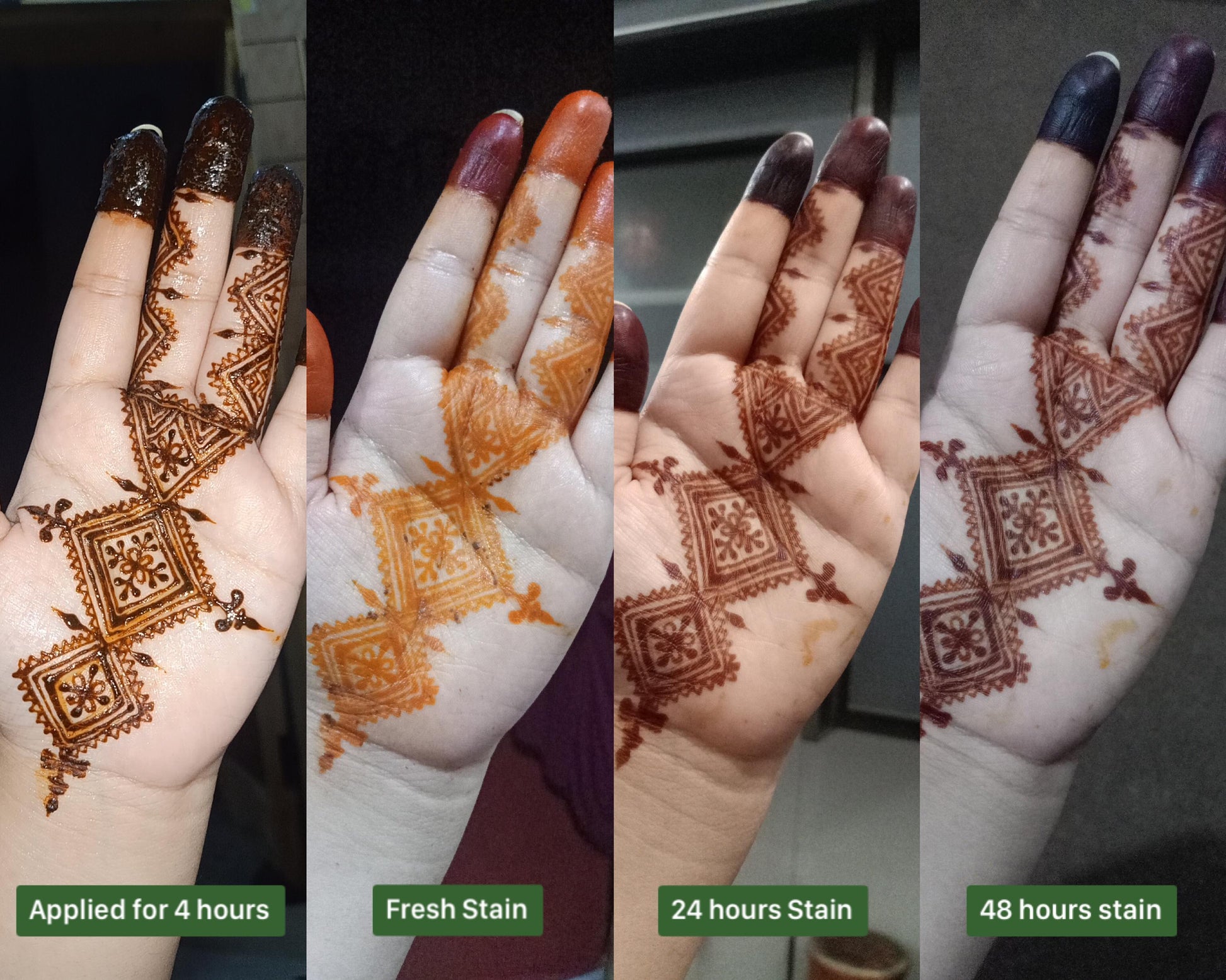 · Gently flake off dried henna after 4 hrs (do not wash)
