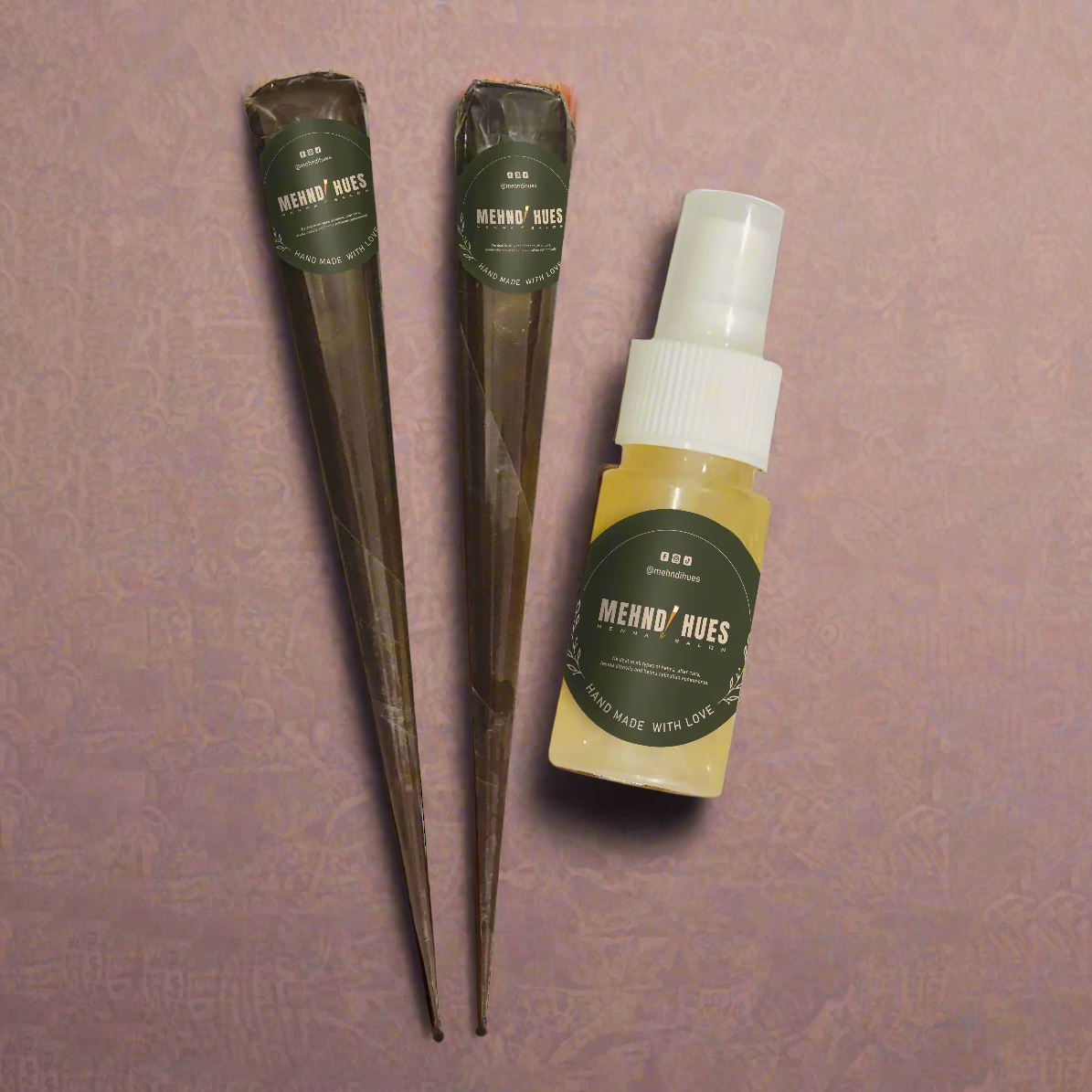 Mehndi Hues' Bridal Special Cones are freshly made to order cones made with a special blend of essential oils. These are 100% natural, safe and chemical free.